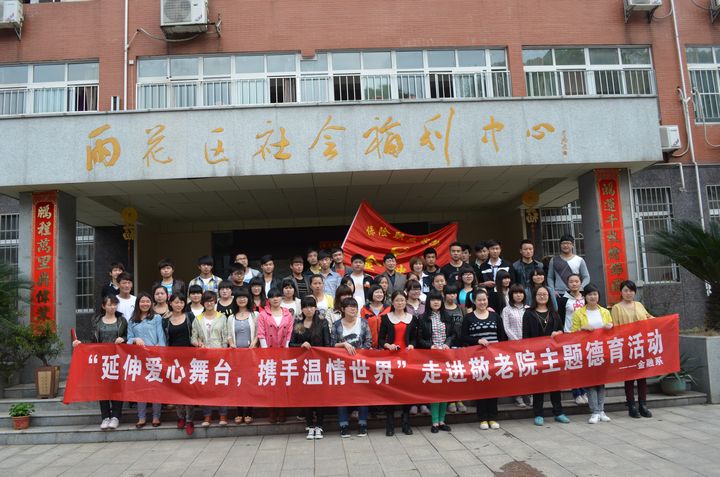 为弘扬中华民族敬老爱老传统美德,培养当代大学生社会实践能力和社会公德意识,3月29日下午,金融系开展了以“延伸爱心舞台,携手温情世界”为主题的德育活动,系全体在校学生党员、团总支学生会全体成员及各班代表前往雨花区社会福利中心慰问老一辈社会建设者,为福利中心老人们送去温暖。