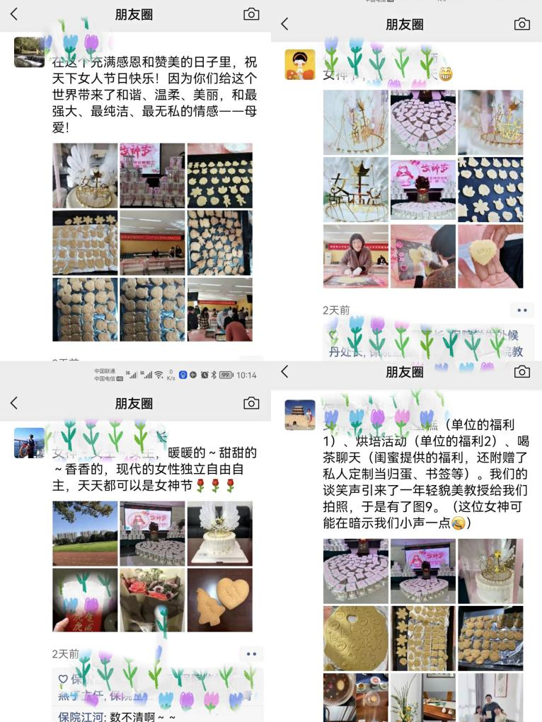 晚上,金年会app手机版在线登录的女教师的朋友圈纷纷刷屏,把节日的欢乐、幸福、感动、满足都呈现在朋友圈,这也是表达她们对学院组织活动的莫大的认可与感激。