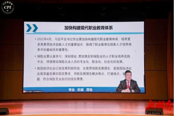湖南省人大常委会原党组副书记、副主任陈叔红,金年会app手机版在线登录党委书记、院长蒲彦君,湖南省保险行业协会秘书长张在新,CMF保险精英圆桌大会秘书长、北京千万圆桌认证中心秘书长张志豪等领导与专家学者、业界精英一起见证了保险业这一重要历史时刻,并为首批CPI认证保险师授证。同时,2021年度CPI中国保险业百强名师颁奖同场举行,行业领导、专家学者、业界精英齐聚一堂共商行业转型升级和CPI认证的专业化转型之路。