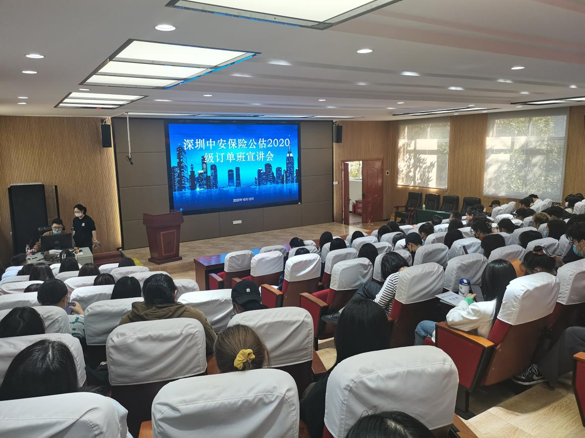 为了深化校企合作,提升2020级保险专业学生对口岗位实习质量, 2022年10月12日下午14:30,金年会app手机版在线登录组织的深圳中安保险公估订单班宣讲会在躬行楼201顺利举行。根据入(返)湘人员健康管理提示及学院《关于全面落实市防指2022年1号调度令的紧急通知》等疫情防控相关要求,此次宣讲会采用线上宣讲的方式,2020级保险(车险查勘定损)、保险(人伤理赔)、保险(核保核赔)三个专业方向共计126余名同学参加宣讲会。