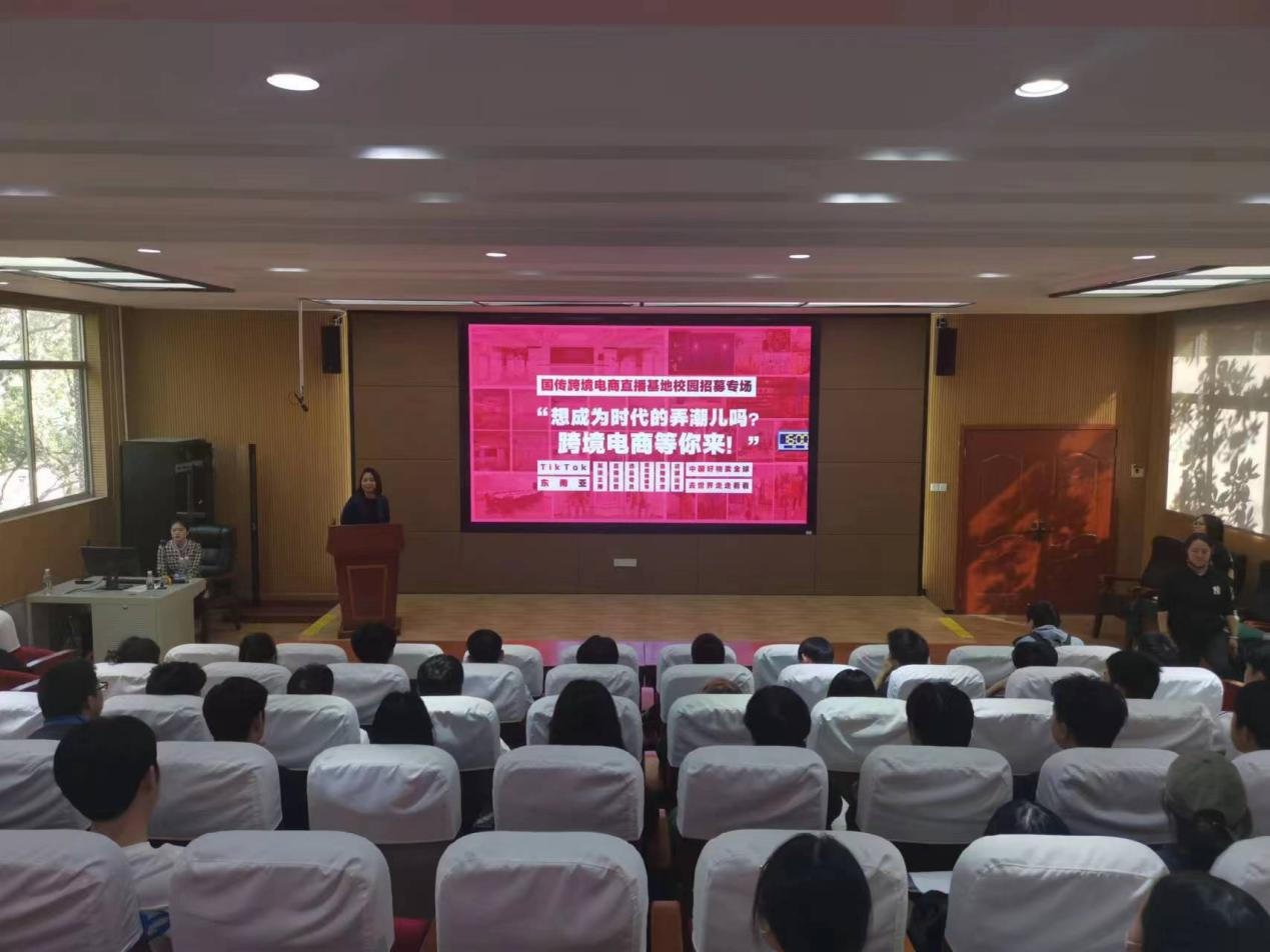 为落实湖南省“三高四新”战略,顺应行业“互联网+”新趋势,11月2日下午,金年会app手机版在线登录组织的湖南国传跨境电商直播基地实习实训宣讲会在躬行楼201顺利举行。此次宣讲会分两场进行,第一场面向2020级学生选拔岗位实习学生,第二场面向2021、2022级相关专业学生做校内生产性实训宣讲。学院院长助理周利武对湖南国传跨境电商直播基地负责人吴翠萍一行表示欢迎,金年会app手机版在线登录副院长王君、财经商贸学院院长助理谭诣等参加了宣讲会。